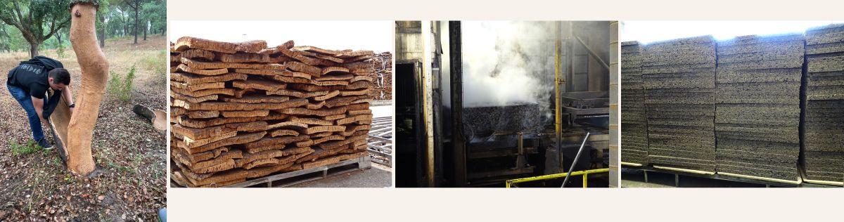 Le liège expansé est fabriqué à partir de granulés de liège chauffés à haute température (environ 300°C) sans ajout de liant. Sous l'effet de la chaleur, la subérine naturellement présente dans le liège agit comme une colle qui lie les granulés entre eux. Ce processus provoque également l'expansion des granulés qui prennent une texture légère et poreuse.
